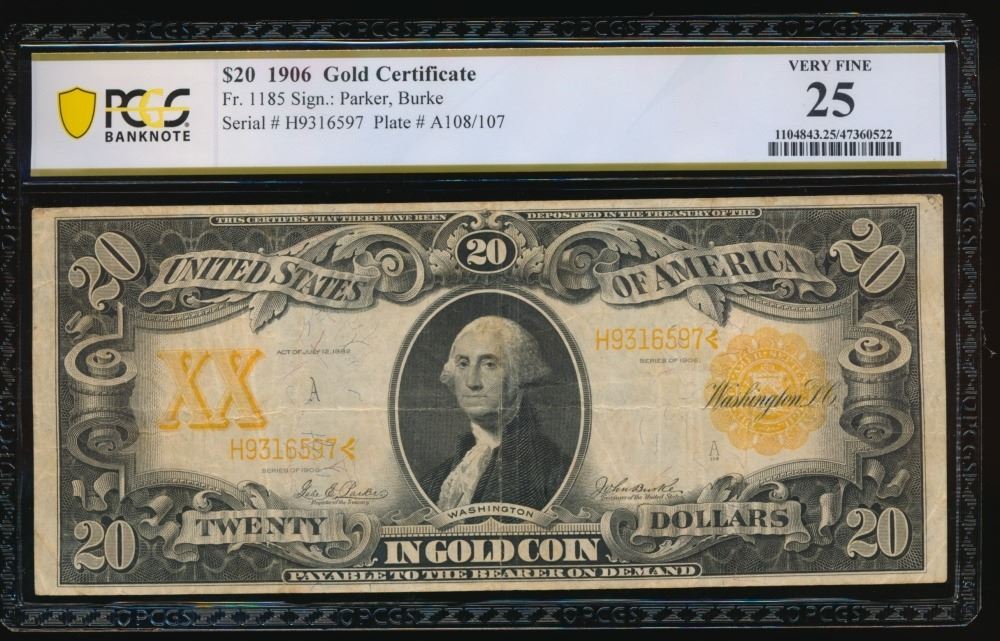 One 1906 $20 Gold Certificate PCGS 25>