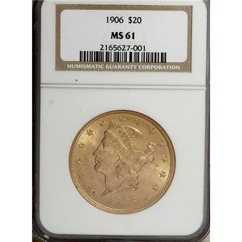 1906 $20 MS61 NGC. NGC Census: (183/174). PCGS Pop