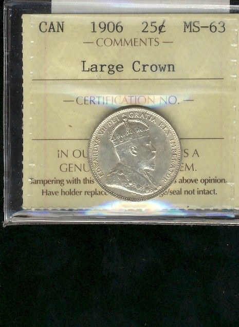 8. The estimates listed are taken from the Canadian Coin News, Charlton catalogues, Canadian Dealers News letter and retail prices, e-bay sales, Cornwell re- port and/or the actual market selling/ asking prices. Key dates and Highest grade material will generally command a premium and should sell close to and/ or above the estimates. Our estimates are fair and very reasonable, please bid accordingly. No lot should sell less than 50% of the estimates. With a bid of 80% of the estimate, you have a fair chance of succeeding, with a bid of 100% of the highest estimate, you will be likely to succeed.