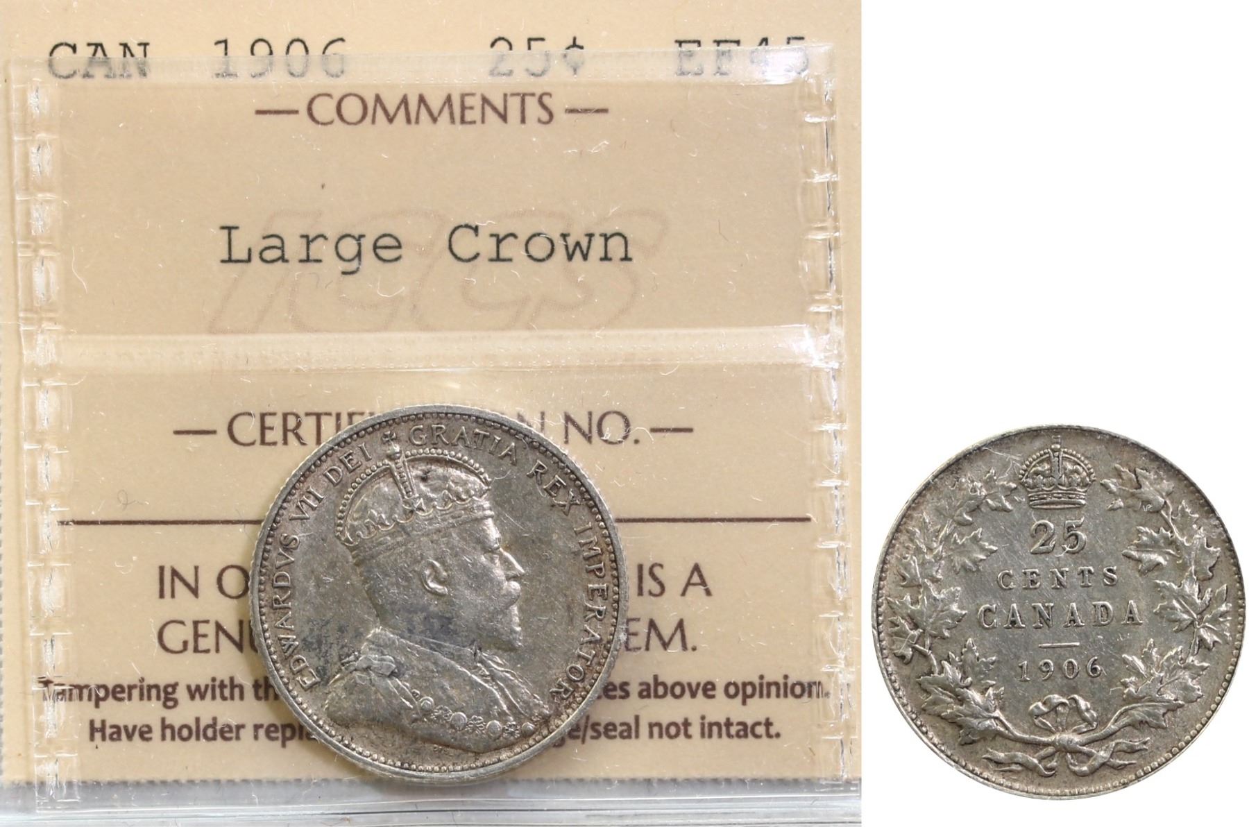 1906 25¢ "Large Crown" ICCS Choice Extra Fine-45