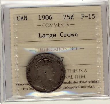 1906 25¢ Large Crown ICCS F15