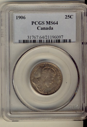 1906 25¢ PCGS MS64. Interesting russet shades.