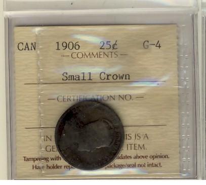 1906 25¢ Small Crown ICCS G4. A very rare variety'