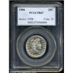 <table><tr><td><TABLE cellSpacing=0 cellPadding=0 width="100%" bgColor=#000000 border=0><TBODY> <TR><TD width="100%"><TABLE cellSpacing=1 cellPadding=3 width="100%" border=0><TBODY><TR><TD width="100%" bgColor=#79735c><FONT face=arial color=#ffffff size=3><B>Description</B> </FONT></TD></TR><TR><TD width="100%" bgColor=#ffffff><FONT face=arial size=2><B>1906 25C PR67 PCGS.</B></I> Faint pastel-lemon toning evenly covers each side of this deeply mirrored proof striking. The surfaces are virtually flawless, and the striking details are fully brought up in all areas. A lovely, fully original type coin. Some scuffiness over the reverse arrows is actually on the PCGS holder, not on the coin. Population: 17 in 67, 2 finer (9/03). </FONT></TD></TR></TBODY></TABLE></TD></TR></TBODY></TABLE><BR><A name=PricesRealized></A><TABLE cellSpacing=0 cellPadding=0 width="100%" bgColor=#000000 border=0><TBODY><TR><TD width="100%"><TABLE cellSpacing=1 cellPadding=3 width="100%" border=0><TBODY><TR><TD width="100%" bgColor=#79735c><A name=PR><FONT face=arial color=#ffffff size=3><B>Previous Prices from Heritage Auctions</B> </FONT></A></TD></TR><TR><TD bgColor=#f6f6ed><TABLE cellSpacing=0 cellPadding=0 width="100%" border=1><TBODY><TR><TD align=middle width="33%"><B>Date</B></TD><TD align=middle width="33%"><B>Service</B></TD><TD align=middle width="33%"><B>Price</B></TD></TR><TR bgColor=whitesmoke><TD width="33%"><B>01/12/2002</B></TD><TD width="33%">PCGS</TD><TD width="33%">$2,990.00</TD></TR><TR bgColor=whitesmoke><TD width="33%"><B>11/01/1999</B></TD><TD width="33%">NGC</TD><TD width="33%">$3,850.00</TD></TR></TBODY></TABLE></TD></TR><TR><TD bgColor=#ffffff><FONT face=arial size=1 ?>PLEASE NOTE: All prices realized reflect the final hammer price PLUS the buyer's premium in auctions that charge a buyer's premium. Each item has a notation at the top of the listing indicating whether that lot included a buyer's premium. Example: A item that sells with a final hammer price of $100 and a 20% buyer's premium will display with a price realized of $120. All information listed is intended to be as accurate as possible, but errors are possible. Please use this guide carefully and inform us of any inaccuracies. </FONT></TD></TR></TBODY></TABLE></TD></TR></TBODY></TABLE><BR><TABLE cellSpacing=0 cellPadding=0 width="100%" bgColor=#000000 border=0><TBODY><TR><TD width="100%"><TABLE cellSpacing=1 cellPadding=3 width="100%" border=0><TBODY><TR><TD width="100%" bgColor=#79735c colSpan=6><FONT face=arial color=#ffffff size=3><B>Price Guide*</B> </FONT></TD></TR><TR bgColor=#f6f6ed><TD align=middle><B>Grade</B> </TD><TD align=middle><B>Coin World<BR>(Trends)</B> </TD><TD align=middle><B>Numismedia<BR>Retail</B> </TD><TD align=middle><B>Numismedia<BR>Wholesale</B> </TD><TD align=middle><B>Coin<BR>Universe</B> </TD><TD align=middle><B>Heritage<BR>Value Index</B> </TD></TR><TR bgColor=#ffffff><TD align=middle>66</TD><TD align=right>---</TD><TD align=right>---</TD><TD align=right>$2,325.00</TD><TD align=right>$3,350.00</TD><TD align=right>$2,185.00</TD></TR><TR style="FONT-WEIGHT: bold" bgColor=#cccfdd><TD align=middle>67</TD><TD align=right>---</TD><TD align=right>---</TD><TD align=right>$3,850.00</TD><TD align=right>$5,250.00</TD><TD align=right>$4,090.00</TD></TR><TR bgColor=#ffffff><TD align=middle>68</TD><TD align=right>---</TD><TD align=right>---</TD><TD align=right>$9,650.00</TD><TD align=right>---</TD><TD align=right>---</TD></TR><TR bgColor=#ffffff><TD colSpan=6><FONT size=1>*All information listed is intended to be as accurate as possible, but errors are possible. No item may be returned or refused based on this information which is provided as a service to our customers. You should contact each pricing source directly to determine the accuracy of this information. </FONT></TD></TR></TBODY></TABLE></TD></TR></TBODY></TABLE><BR><TABLE cellSpacing=0 cellPadding=0 width="100%" bgColor=#000000 border=0><TBODY><TR><TD width="100%"><TABLE cellSpacing=1 cellPadding=3 width="100%" border=0><TBODY><TR><TD width="100%" bgColor=#79735c><FONT face=arial color=#ffffff size=3><B>Population Guide</B> </FONT></TD></TR><TR bgColor=#ffffff><TD align=middle><!-- Begin Output of Population Grid--><TABLE cellSpacing=0 cellPadding=0 width="100%" border=0><TBODY><TR><TD vAlign=center><TABLE cellSpacing=0 width="100%" border=1 cellsadding="3"><TBODY><TR><TD vAlign=center><TABLE cellSpacing=0 cellPadding=3 width="100%" border=1><TBODY><TR><TD vAlign=center align=middle bgColor=#f0f1e8 colSpan=2 <CENTER><FONT face=Arial size=2><B>PCGS Pop </B></FONT><CENTER></CENTER></TD><TD vAlign=center align=middle bgColor=#f0f1e8 colSpan=2><CENTER><FONT face=Arial size=2><B>NGC Pop</B></CENTER></FONT></TD></TR><TR><TD vAlign=center><FONT face=Arial size=2>(67)</FONT> </TD><TD vAlign=center align=right><FONT face=Arial size=2>17</FONT> </TD><TD vAlign=center><FONT face=Arial size=2>(67)</FONT> </TD><TD vAlign=center align=right><FONT face=Arial size=2>19</FONT> </TD></TR><TR><TD vAlign=center><FONT face=Arial size=2>(>67)</FONT> </TD><TD vAlign=center align=right><FONT face=Arial size=2>2</FONT> </TD><TD vAlign=center><FONT face=Arial size=2>(>67)</FONT> </TD><TD vAlign=center align=right><FONT face=Arial size=2>4</FONT> </TD></TR></TBODY></TABLE></TD></TR></TBODY></TABLE></TD></TR></TBODY></TABLE><!-- End Output of Population Grid--></TD></TR></TBODY></TABLE></TD></TR></TBODY></TABLE><BR><TABLE cellSpacing=0 cellPadding=0 width="100%" bgColor=#000000 border=0><TBODY><TR> Important notice: Heritage usually auctions material at the rate of 200-250 lots per hour. On some occasions eBay Live bid software or the Internet may not be able to keep up with the pace of the auction. We recommend placing a realistic absentee bid now as insurance to avoid disappointment. Occasionally the auctioneer may eliminate or reject an eBay Live bid, and the auctioneer may also reopen a lot after the close of the eBay live bidding (usually because we missed an audience bid), and