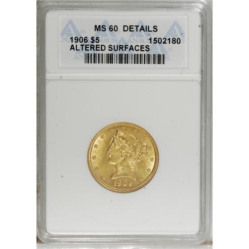 1906 $5 --Altered Surfaces--ANACS. MS60 Details. NG