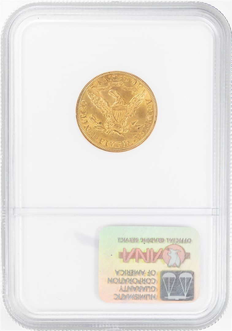 One 1906 $5 Liberty Head Half Eagle Gold Coin NGC MS63 Bass Collection. NGC Certified.