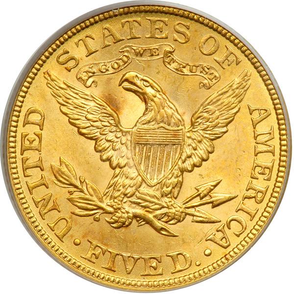 1906 $5 Liberty. PCGS graded MS-64. A satiny mint beauty with lovely golden toning, the surface careens with golden luster (PCGS # 8413) .