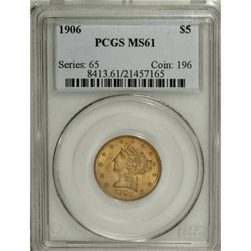 1906 $5 MS61 PCGS. PCGS Population (183/862). NGC