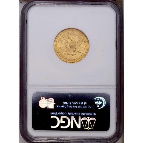 <B>1906<$5> MS64 NGC.</B></I> Lustrous surfaces yield a pleasing overlay of peach-gold coloration. The design features are sharply struck and clearly defined. A few trivial marks scattered about limit the grade.