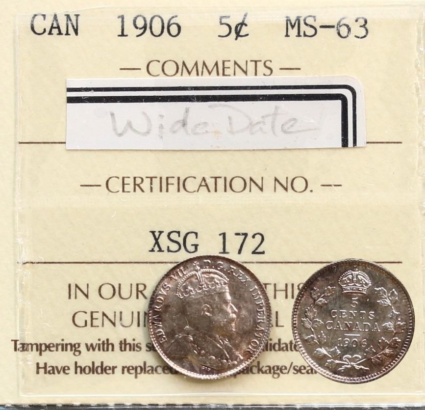 1906 5¢ Wide Date ICCS Choice Mint State-63.