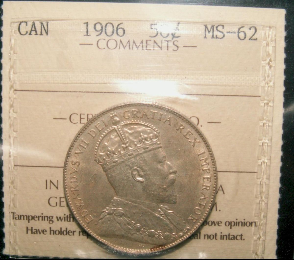 1906 50¢ ICCS MS62. Mostly brilliant. A nice example.