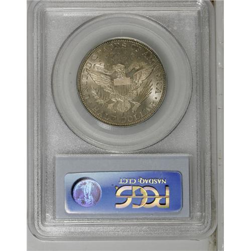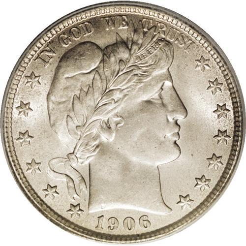 <B>1906 50C MS65 PCGS.</B></I> Powder-blue and walnut-tan tints gently enrich this lustrous and refreshingly unabraded Gem. The strike is decidedly above average, with only trivial incompleteness on the fletchings. 1906 through 1908 are the only years that half dollars were struck for circulation at four different mints. Population: 19 in 65, 5 finer (10/06).<BR><BR><b>Shipping:</b> Coin/Currency (<a target="_blank" href="http://www.heritageauctions.com/common/shipping.php">view shipping information</a>)