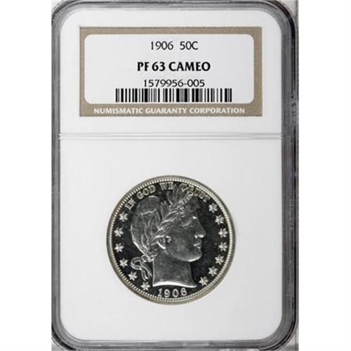 <B>1906 50C PR63 Cameo NGC.</B></I> Fully struck with impressive, razor-sharp details noted on all of the design elements and denticles. The fields are dark and deeply mirrored, and the central devices are nicely frosted. A light coating of milkiness is observed over the reverse. Hairlines are minimal, and contact marks are nonexistent on both sides. <BR><BR><b>Shipping:</b> Coins & Currency (<a target="_blank" href="http://www.heritageauctions.com/common/shipping.php">view shipping information</a>)
