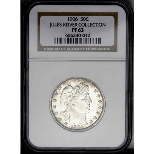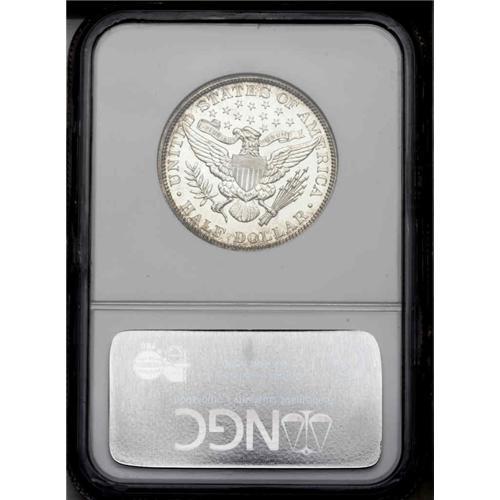 <B>1906<50C> PR63 NGC.</B></I> Well struck with exceptional reflectivity in the fields, and attractive golden-tan toning on the obverse and reverse devices. A few wispy hairlines in the right obverse field limit the grade, but there are no troublesome handling marks to be seen. Only 675 pieces were struck.