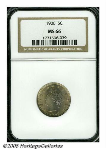 <B>1906<5C> MS66 PCGS.</B></I> Lightly toned in golden and pale violet shades, with satiny surfaces that are not only impeccably preserved, but also boast uncommon sharpness in all areas. Population: 5 in 66, 0 finer (3/05).