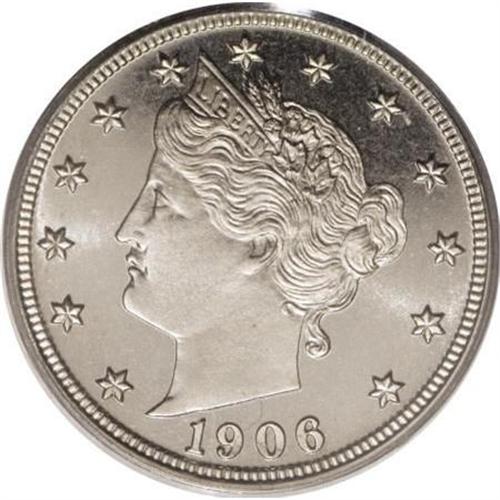 <B>1906 5C PR67 Cameo PCGS.</B></I> This is a beautiful and virtually flawless example of the issue. Both sides of the piece are fully struck and entirely untoned, with lavish reflectivity in the fields and lovely light frost on the devices. Only one specimen has received an even loftier grade from PCGS. Population: 12 in 67 Cameo, 1 finer (8/07). <BR><BR><b>Shipping:</b> Coins & Currency (<a target="_blank" href="http://www.heritageauctions.com/common/shipping.php">view shipping information</a>)