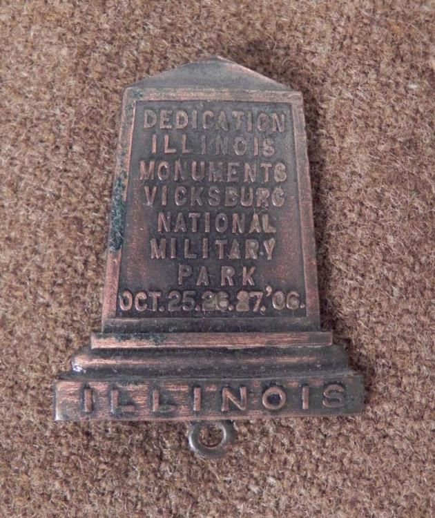 1906 BADGE ISSUED "DEDICATION ILLINOIS MONUMENTS VICKSBURG MILITARY PARK-OCT, 06PIN BACK --NICE CONDITION
