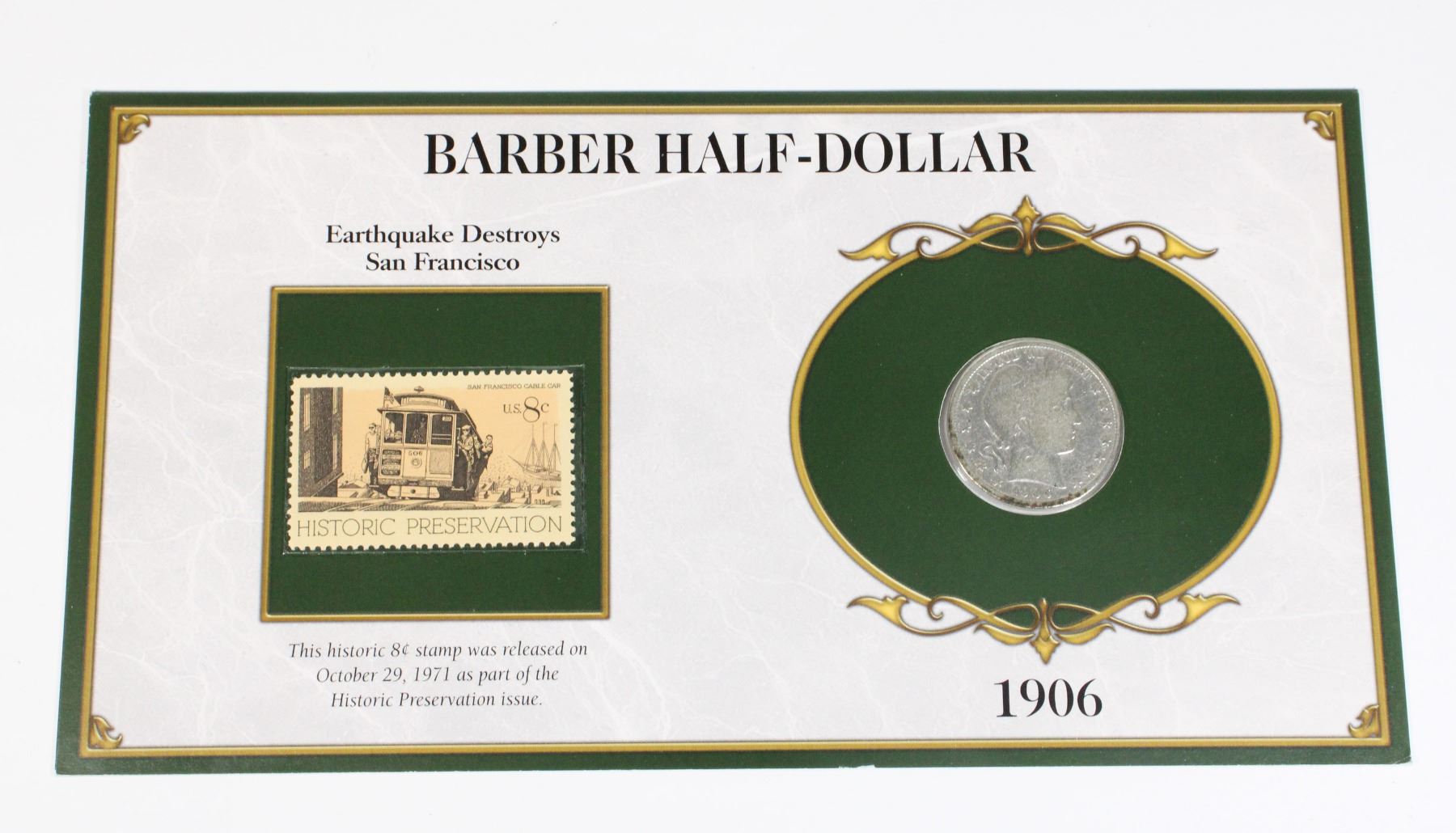 1906 BARBER HALF DOLLAR IN PANEL WITH FASCINATING