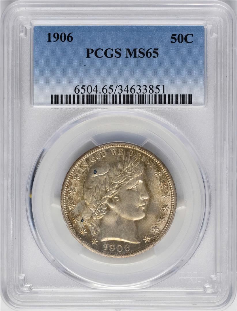 One 1906 Barber Half Dollar Coin PCGS MS65. PCGS Graded.