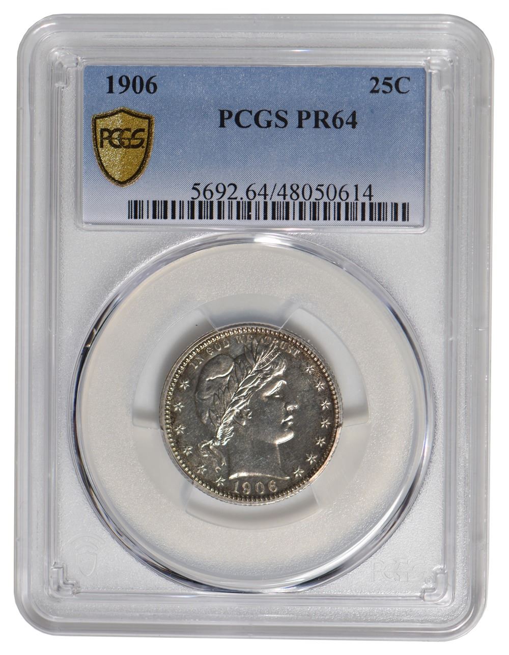 One 1906 Barber Quarter PCGS PR64.