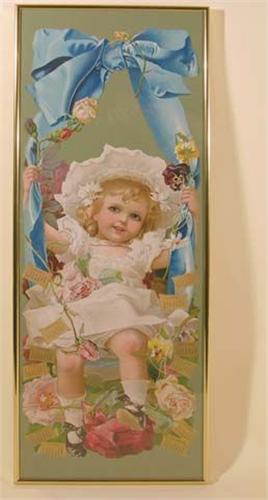 1906 calendar Grand Union Tea, baby in swing die cut, 11" x 29" Ex. cond.