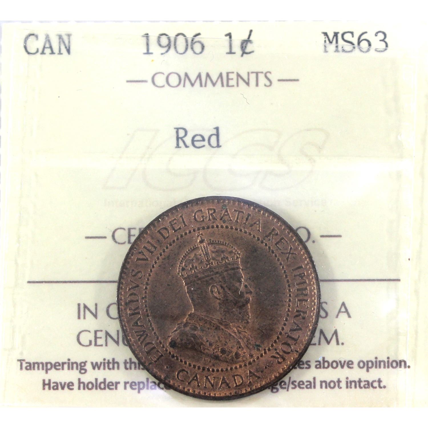1906 Canada 1-cent ICCS Certified MS-63 Red