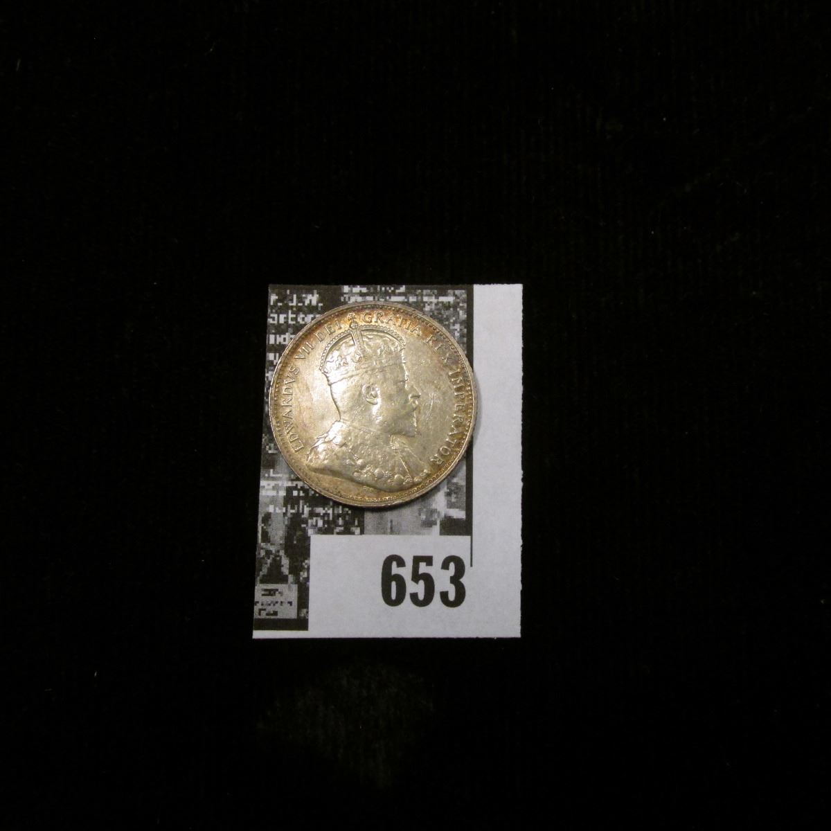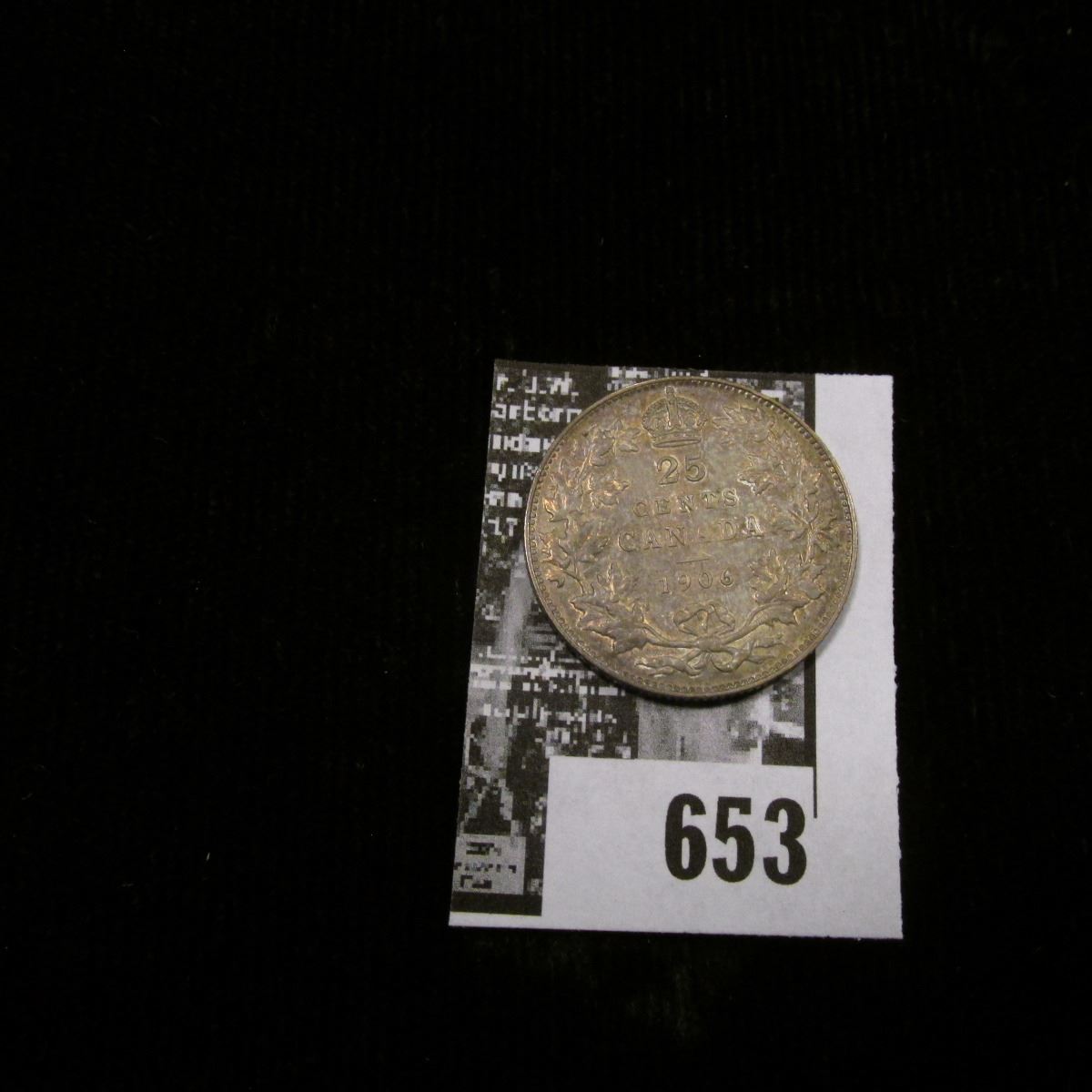 1906 Canada Quarter, Almost Uncirculated gold highlight toning.