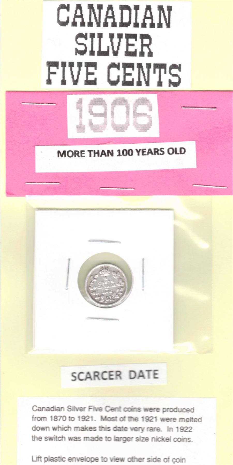 1906 Canadian Silver Five Cents