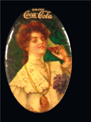 1906 Coca Cola Celluloid Pocket Mirror, The Whitehead and Hoag Co. Some crazing at 3:00 otherwise very good condition. 1 3/4 X 2 3/4 inches.