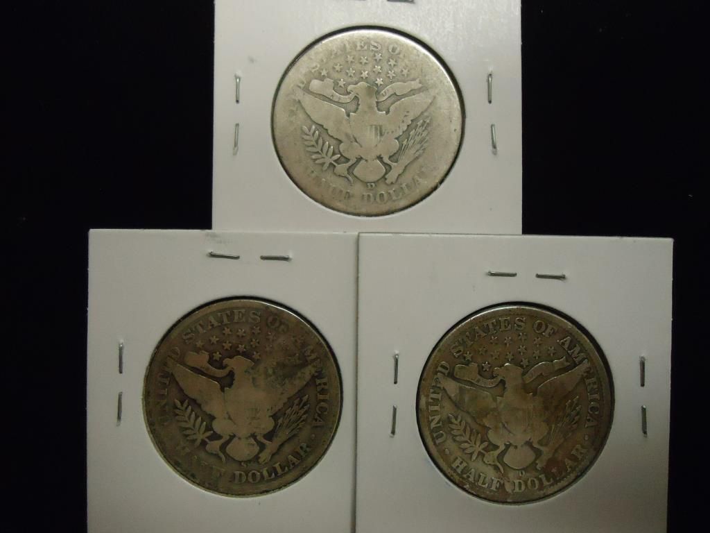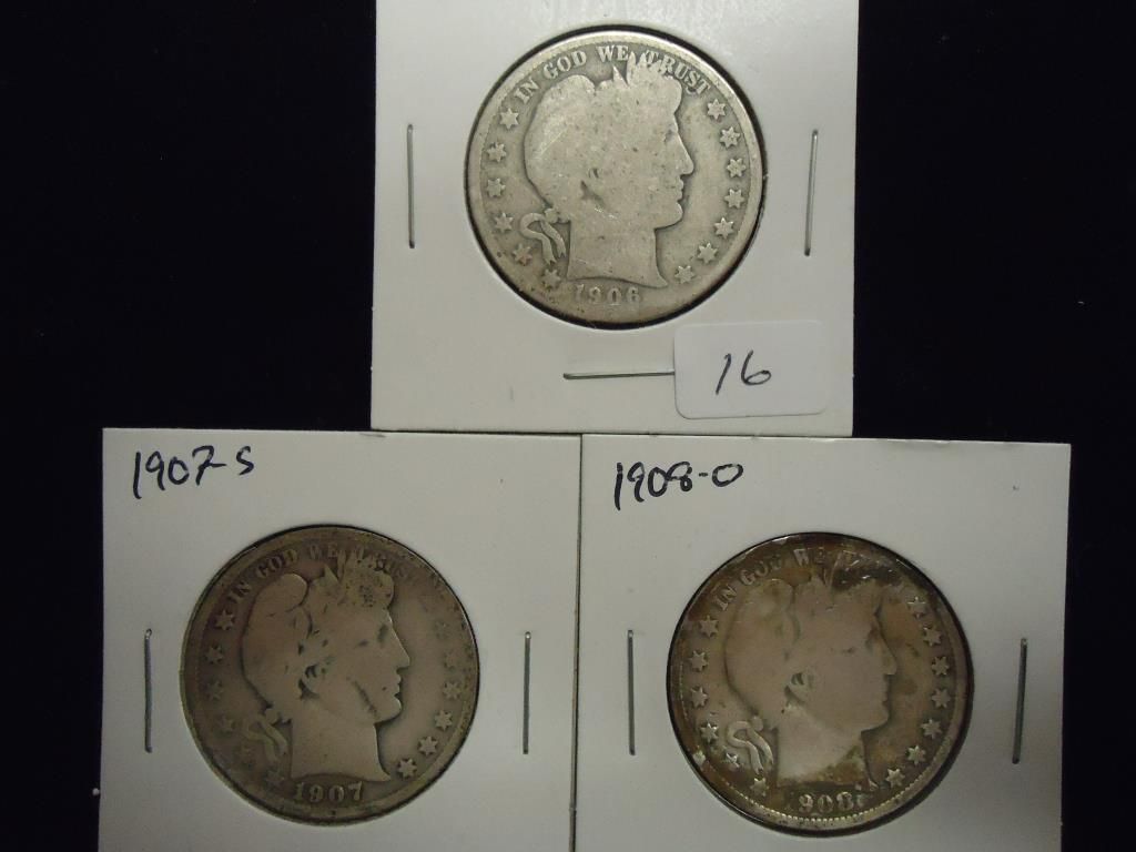 1906-D,07-S & 08-O BARBER HALF DOLLARS