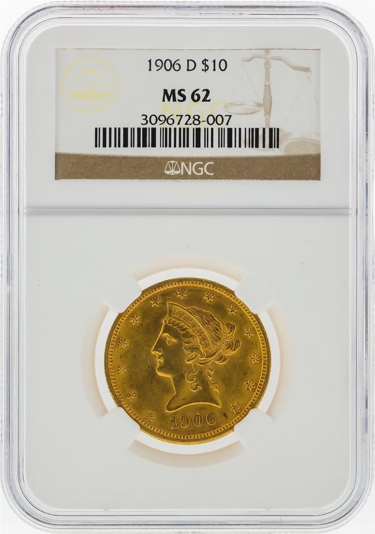 One 1906-D $10 Liberty Head Eagle Gold Coin NGC Graded MS62. NGC Certified.