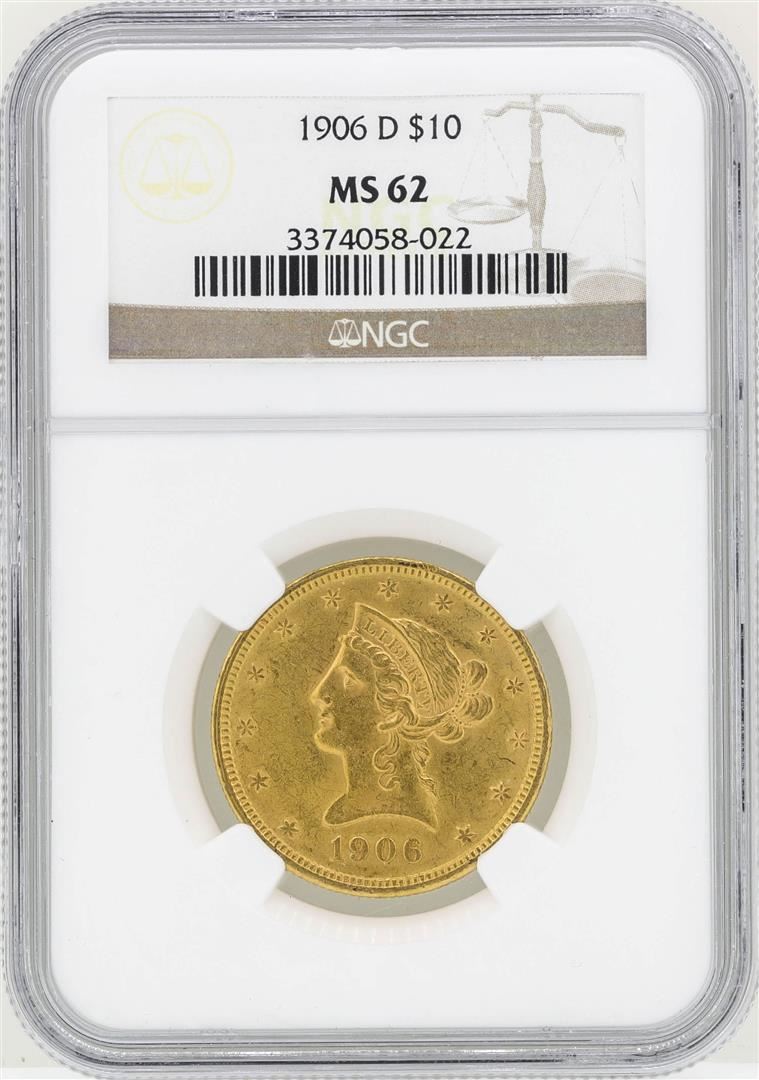 One 1906-D $10 Liberty Head Eagle Gold Coin NGC MS62. NGC Certified.