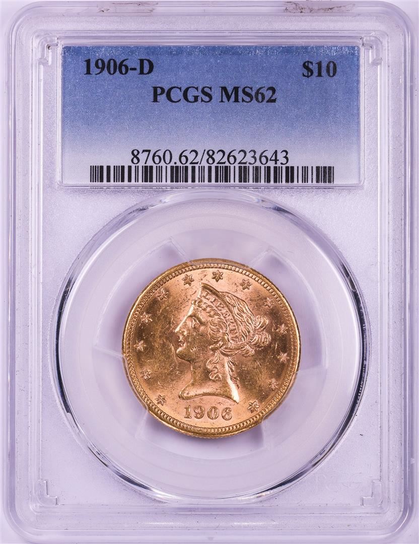 One 1906-D $10 Liberty Head Eagle Gold Coin PCGS MS62.