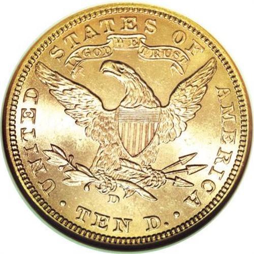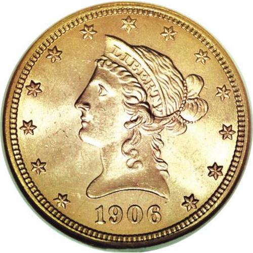 <B>1906-D $10 MS64 NGC.</B></I> This precisely struck near-Gem has unencumbered luster and slightly dusky green-gold toning. Marks are minimal, with the reverse particularly undisturbed. From the first year of operation of the Denver Mint, and one of only two D-mint issues of the Liberty type.<BR><BR><B>Coin Engraver:</B> Christian Gobrecht<BR><BR><b>Shipping:</b> Coins & Currency (<a target="_blank" href="http://www.heritageauctions.com/common/shipping.php">view shipping information</a>)