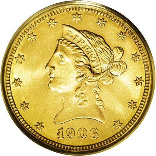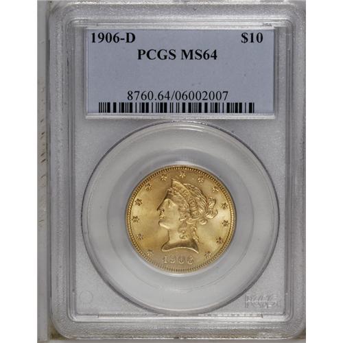 1906-D $10 MS64 PCGS. The Denver Mint struck the Liber