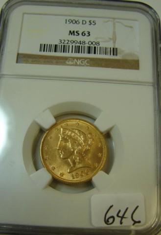 1906-D $5.00 Liberty Gold Coin NGC MS63