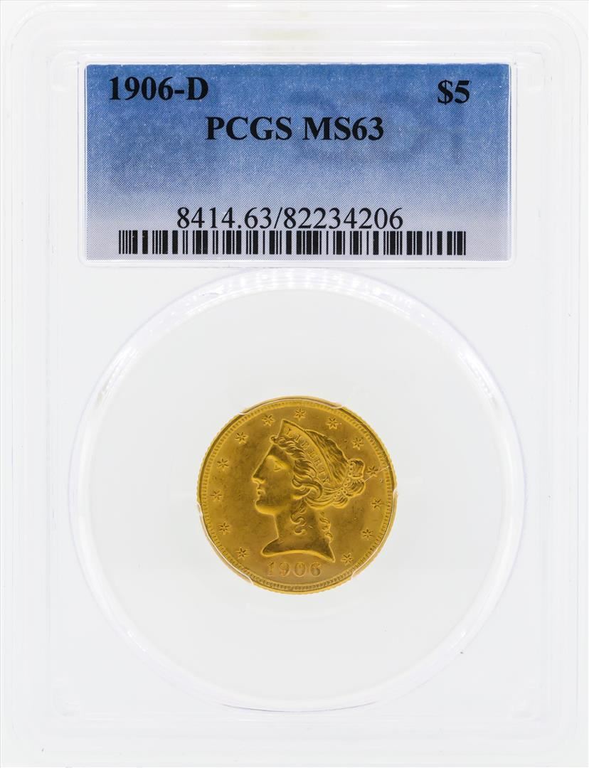 One 1906-D $5 Libertry Head Half Eagle Gold Coin PCGS MS63. PCGS Graded.