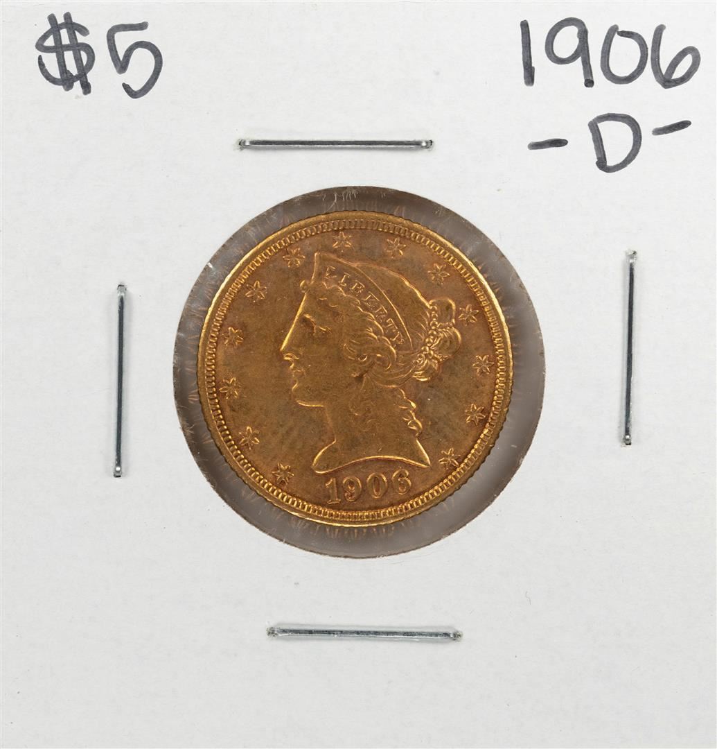 One 1906-D $5 Liberty Head Half Eagle Gold Coin.