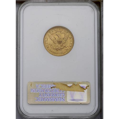 <B>1906-D<$5> MS64 NGC.</B></I> A crisply struck and lustrous representative of the introductory Denver Mint issue. A few faint obverse field grazes are of little import. Certified in a prior generation holder. <BR><BR><B>Important notice:</B> Heritage usually auctions material at the rate of 200-250 lots per hour. On some occasions eBay Live bid software or the Internet may not be able to keep up with the pace of the auction. We recommend placing a realistic absentee bid now as insurance to avoid disappointment. Occasionally the auctioneer may eliminate or reject an eBay Live bid, and the auctioneer may also reopen a lot after the close of the eBay live bidding (usually because we missed an audience bid), and may reject your bid even if it shows you as the winning bidder. By bidding via eBay Live, you agree that Heritage may award the lot to another bidder at its sole discretion under the circumstances described above or any other reasonable circumstances. Since eBay bids are not shown to us until we open the lot on the floor, we treat those bids just like floor bids. In most cases the floor responds before the eBay bid is presented to us, due to Internet lag time, so for consistency we have made it a policy that floor bids are always considered first over tie eBay live bids. Also please note that all Heritage lots purchased through eBay Live carry a 20% Buyer's Premium. Please make sure you read the Terms and Conditions before you bid. This lot is being auctioned in conjunction with a live floor auction by Heritage Galleries & Auctioneers. All final auction and invoice information will be supplied by Heritage Galleries & Auctioneers, and all other information should be considered preliminary. Lot:2856 <BR><BR><B>Winning Notification and Billing:</B> After the FINAL session in this auction is complete, Heritage will send e-mail and snail mail invoices. This process normally takes several days. All final auction and invoice information will be supplied by Heritage Galleries & Auctioneers, and all other information should be considered preliminary. <BR><BR>This auction will be conducted on a live auction floor and over the Internet through eBay Live. If you choose to place an absentee bid, please take a moment to <font color='#0000ff'><u><a href='http://pages.ebay.com/liveauctions/help/before/laabsentee.html'>learn how eBay Live absentee bidding works</a></u></font><font color='#000000'>