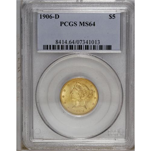 1906-D $5 MS64 PCGS. Forty-five years after the Civil