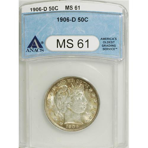 <B>1906-D 50C MS61 ANACS.</B></I> NGC Census: (9/86). PCGS Population (10/130). Mintage: 4,028,000. Numismedia Wsl. Price: $392. (#6505)<BR><BR><b>Shipping:</b> Coins & Currency (<a target="_blank" href="http://www.heritageauctions.com/common/shipping.php">view shipping information</a>)