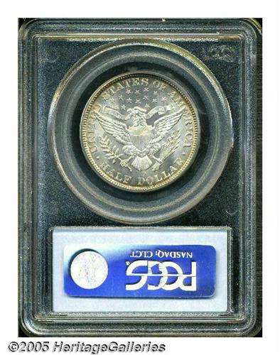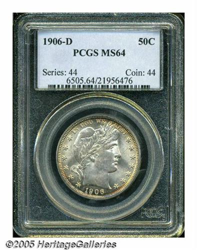 <B>1906-D<50C> MS64 PCGS.</B></I> Sharply struck and fully lustrous, with unmarked surfaces that have a pleasingly bright sheen and display attractive russet and cobalt-blue toning near the peripheries. Population: 40 in 64, 19 finer (4/05).