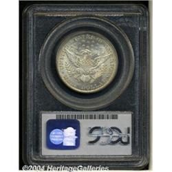 <B>1906-D<50C> MS66 PCGS.</B></I> Just a handful of Mint State survivors from this inaugural year of production at the Denver Mint could possibly match the quality displayed by this shimmering, nearly mark-free example. Examination with a glass yields a few wispy disturbances on the portrait while the satiny fields have escaped virtually unmarked. Population: 4 in 66, 1 finer (7/04). <BR><BR><B>Important notice:</B> Heritage usually auctions material at the rate of 200-250 lots per hour. On some occasions eBay Live bid software or the Internet may not be able to keep up with the pace of the auction. We recommend placing a realistic absentee bid now as insurance to avoid disappointment. Occasionally the auctioneer may eliminate or reject an eBay Live bid, and the auctioneer may also reopen a lot after the close of the eBay live bidding (usually because we missed an audience bid), and may reject your bid even if it shows you as the winning bidder. By bidding via eBay Live, you agree that Heritage may award the lot to another bidder at its sole discretion under the circumstances described above or any other reasonable circumstances. Since eBay bids are not shown to us until we open the lot on the floor, we treat those bids just like floor bids. In most cases the floor responds before the eBay bid is presented to us, due to Internet lag time, so for consistency we have made it a policy that floor bids are always considered first over tie eBay live bids. Also please note that all Heritage lots purchased through eBay Live carry a 20% Buyer's Premium. Please make sure you read the Terms and Conditions before you bid. </span></font></tr></table></td></tr></table>