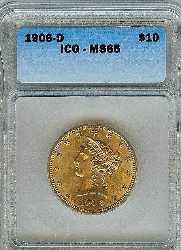 1906-D LIBERTY HEAD $10 GOLD EAGLE ICG MS65