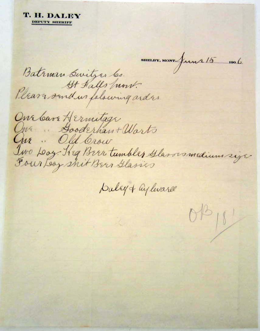 1906 DEPUTY SHERIFF ORDER OF LIQUOR AND BEER GLASSES