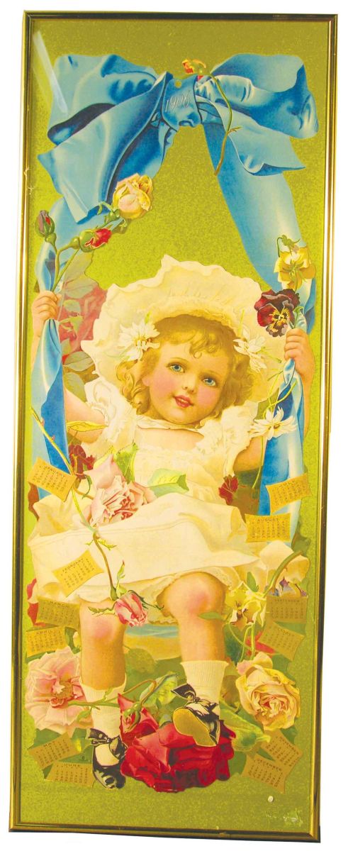 1906 Die Cut Calendar, depicting little girl. Original, not a reproduction. Excellent condition. 11 X 29 inches.