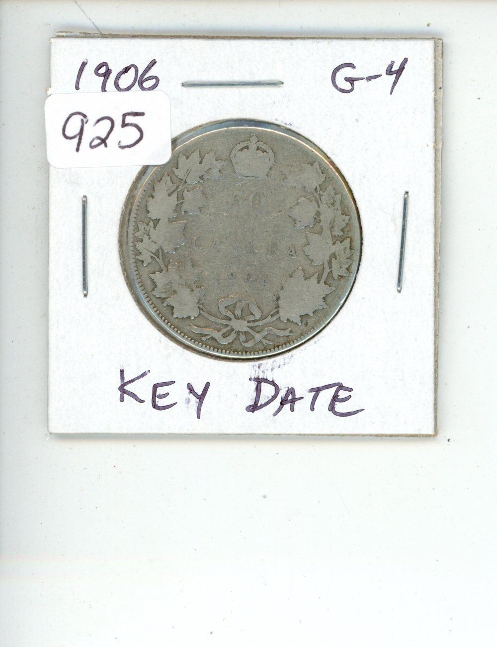 1906 Edward VII Silver 50 Cents. Key Date. Mintage of 350,000. G-4.