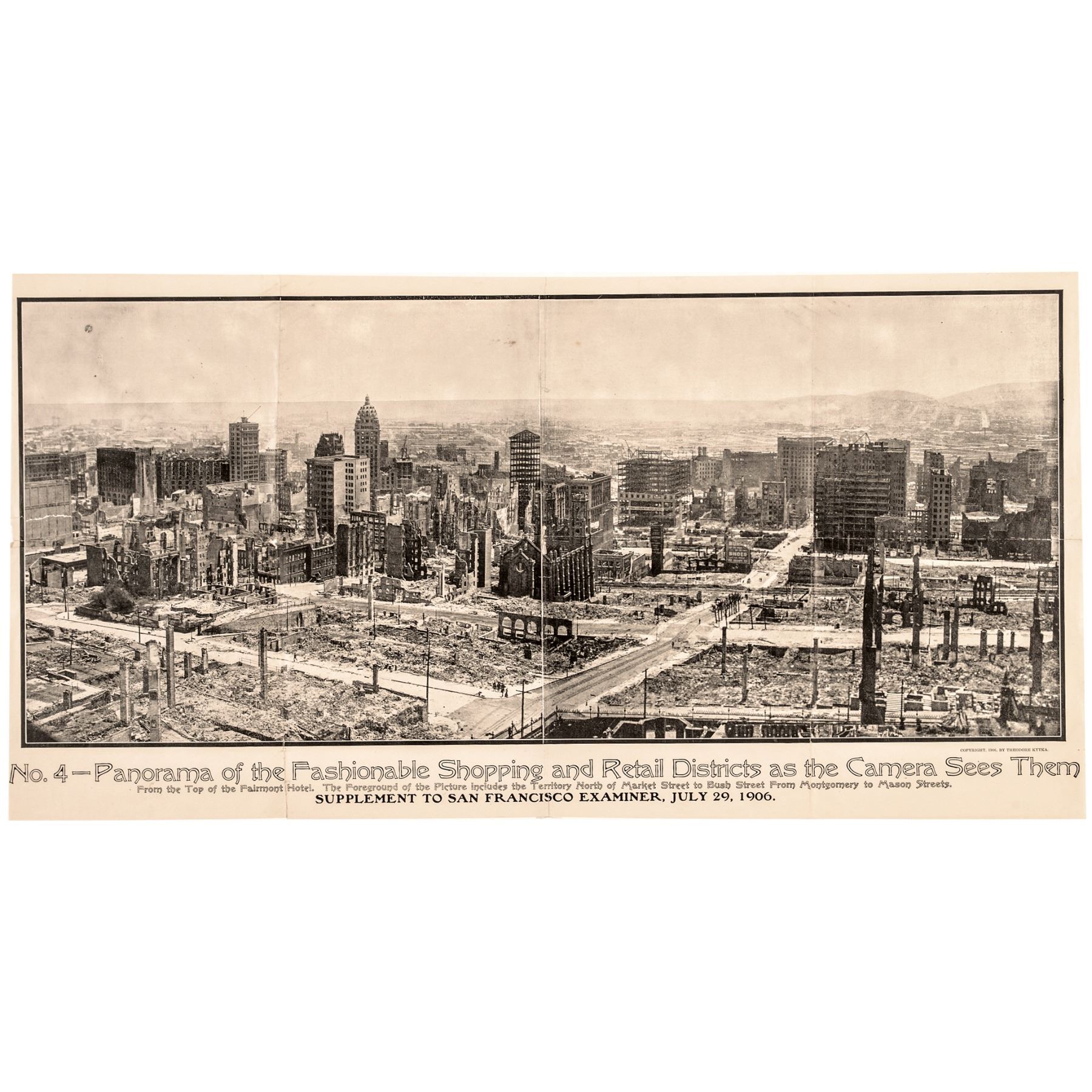 These Five Photographic Images were taken from the top of the Fairmount Hotel by Theodore Kytka, provide a 360-degree view of the destruction of surrounding areas of San Francisco.