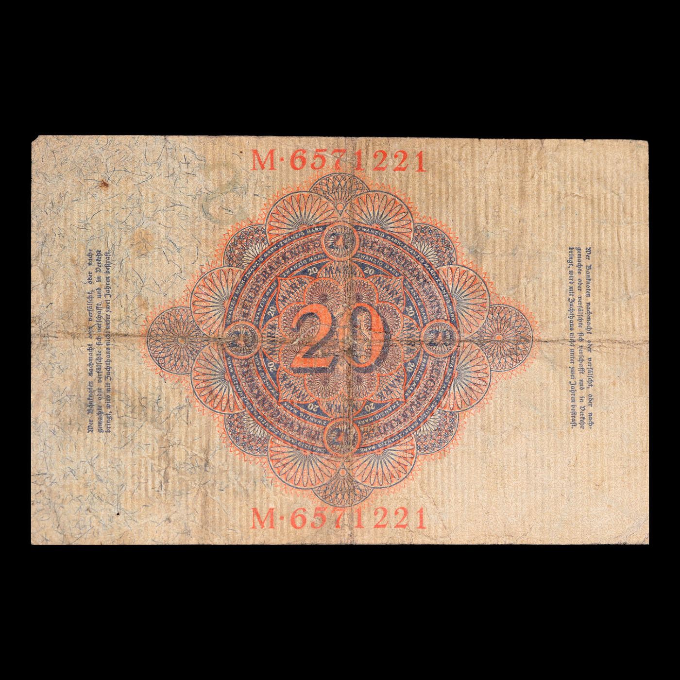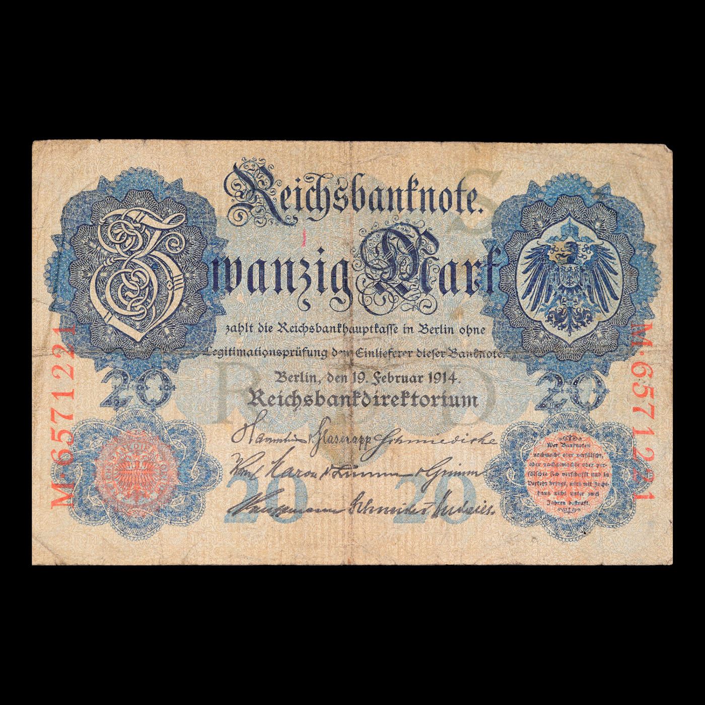 1906 Germany 20 Mark Note P#25B Grades vf+.