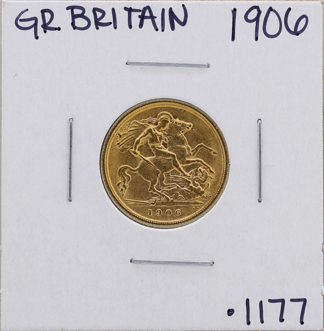 One 1906 Great Britain Edward VII 1/2 Sovereign Gold Coin.